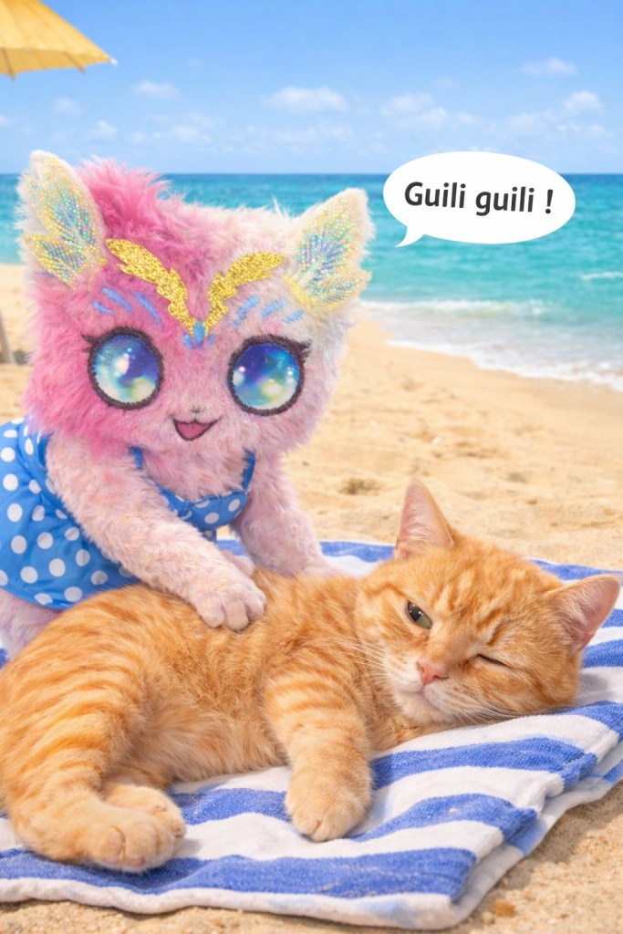 Lilya chatouille un chat.