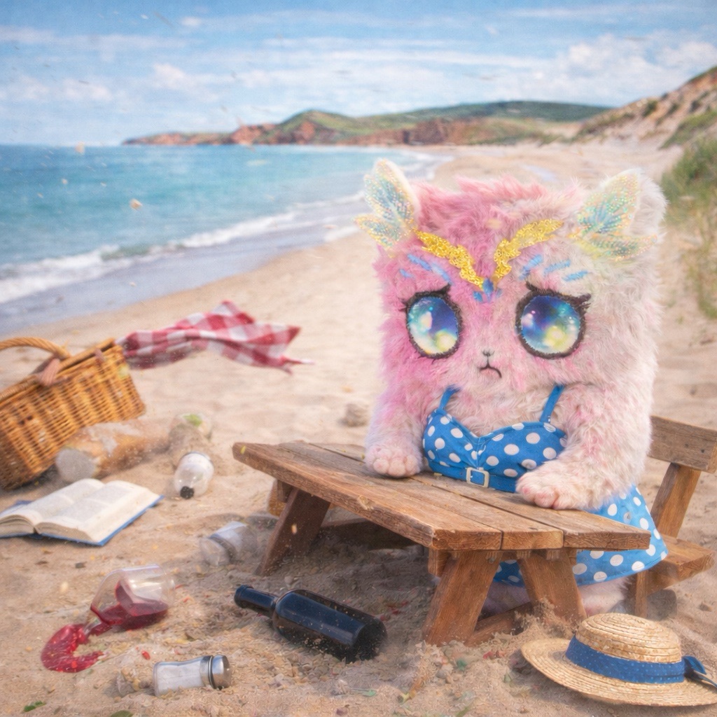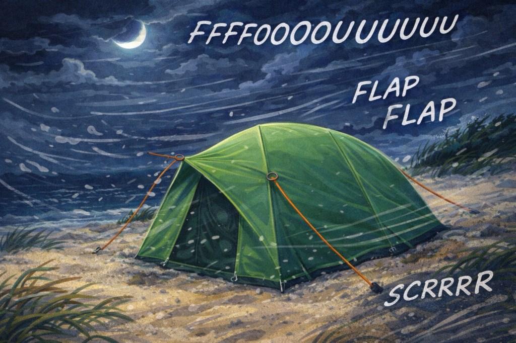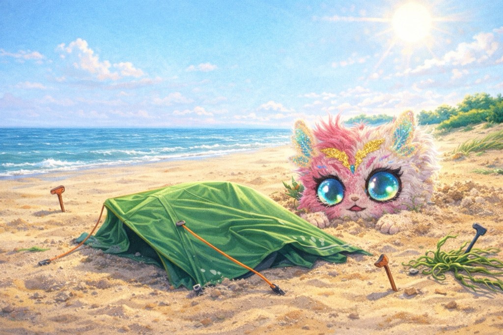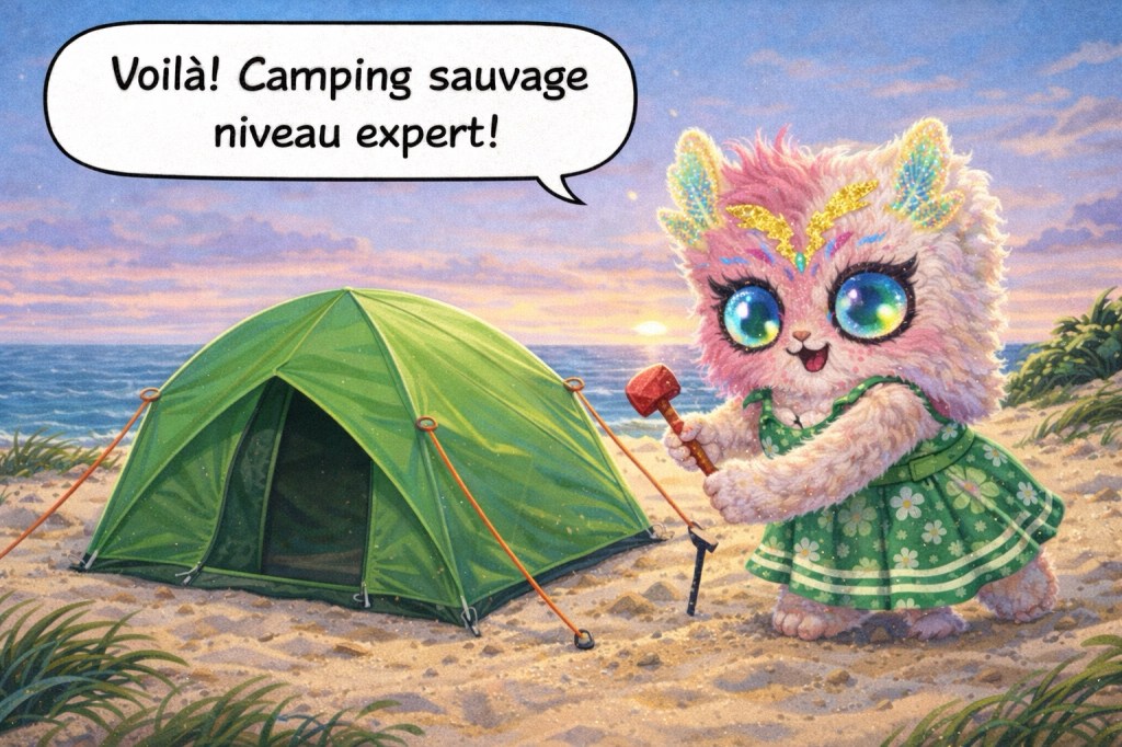 Lilya campe sur la plage.
