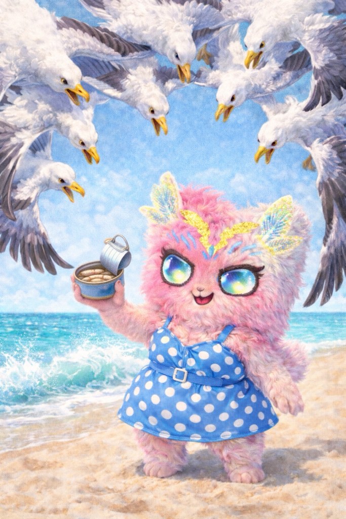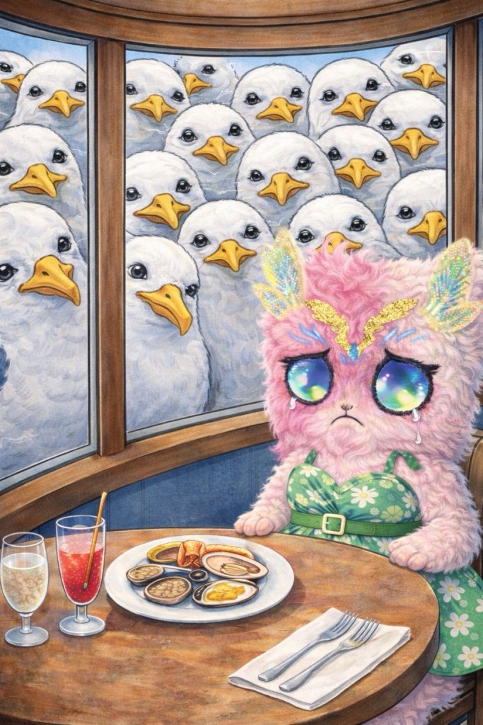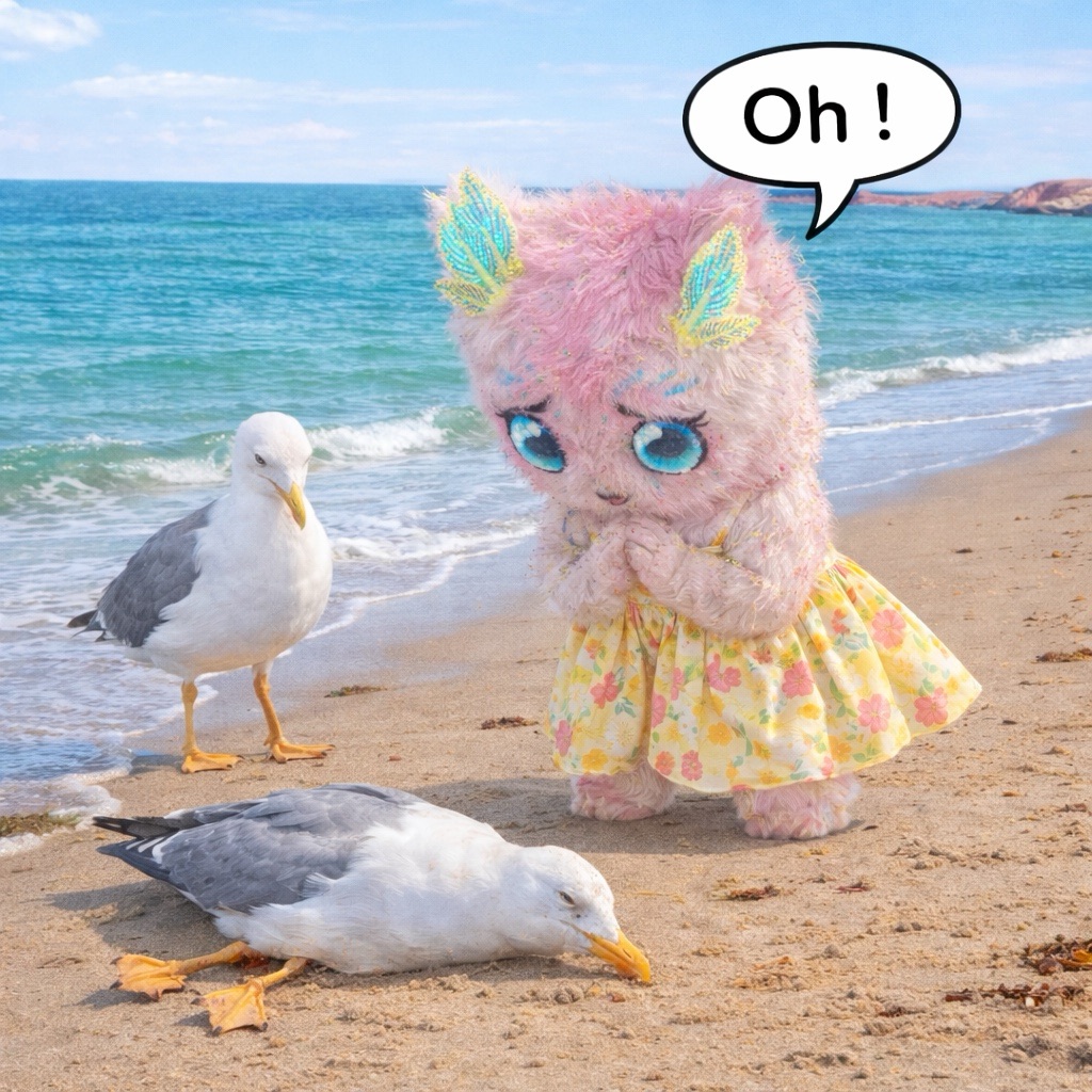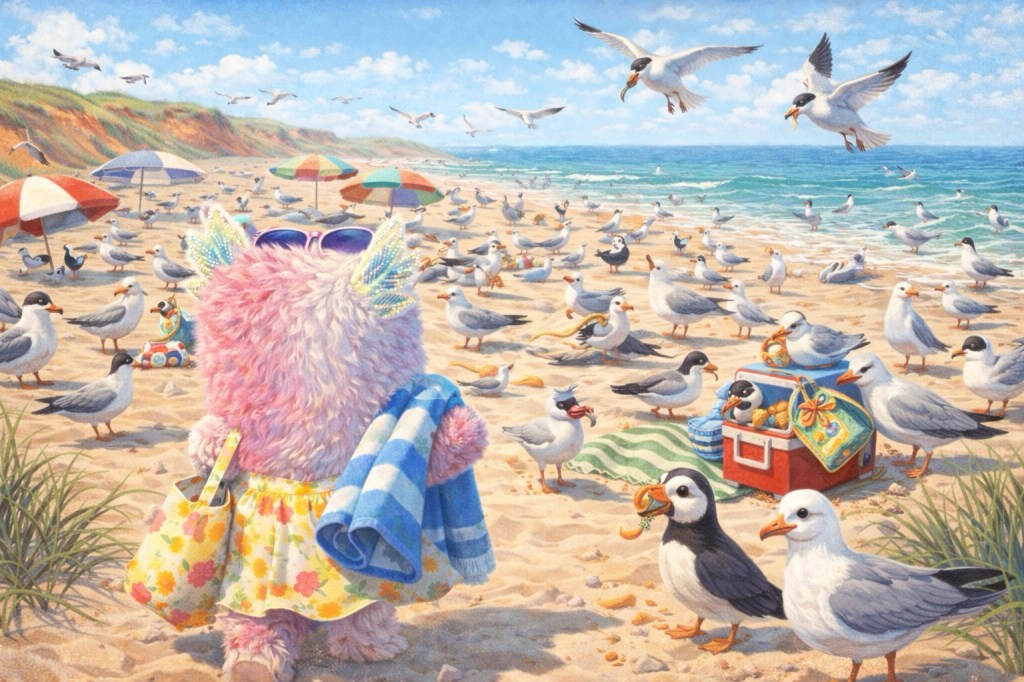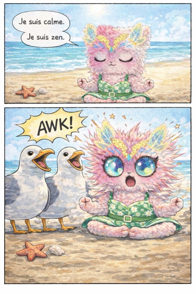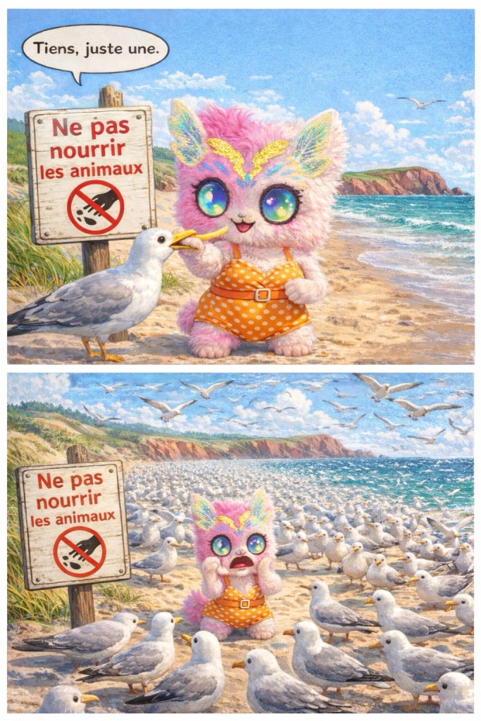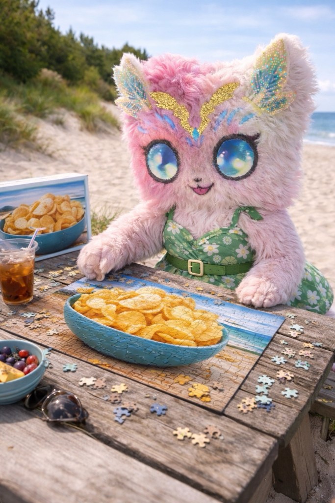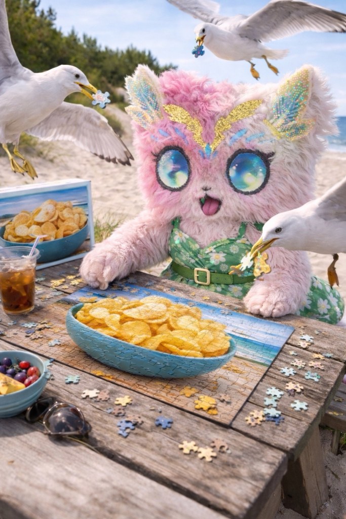 Lilya fait un puzzle et berne les goélands.