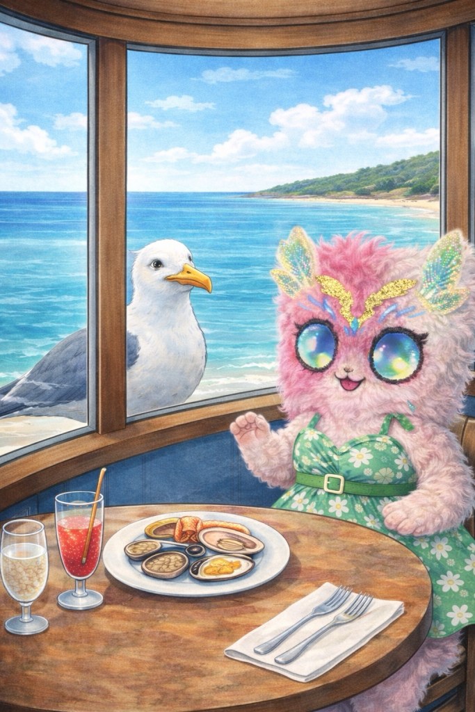 Lilya a choisis la table avec vue sur la mer.