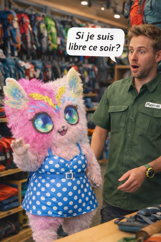 Lilya magasine dans une boutique de plein-air dans le but d’améliorer son cardio.