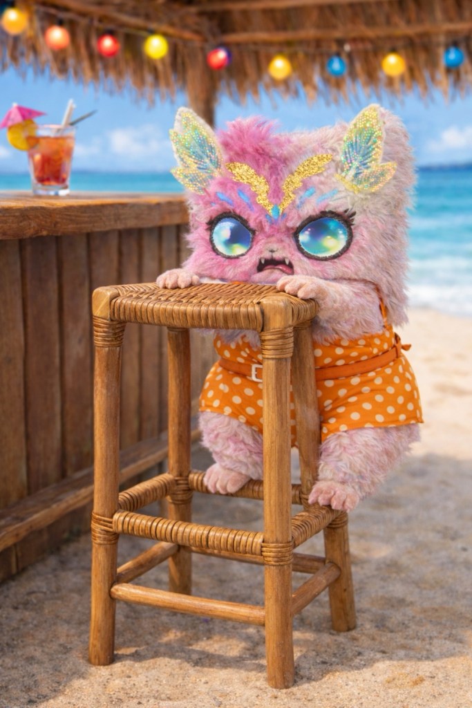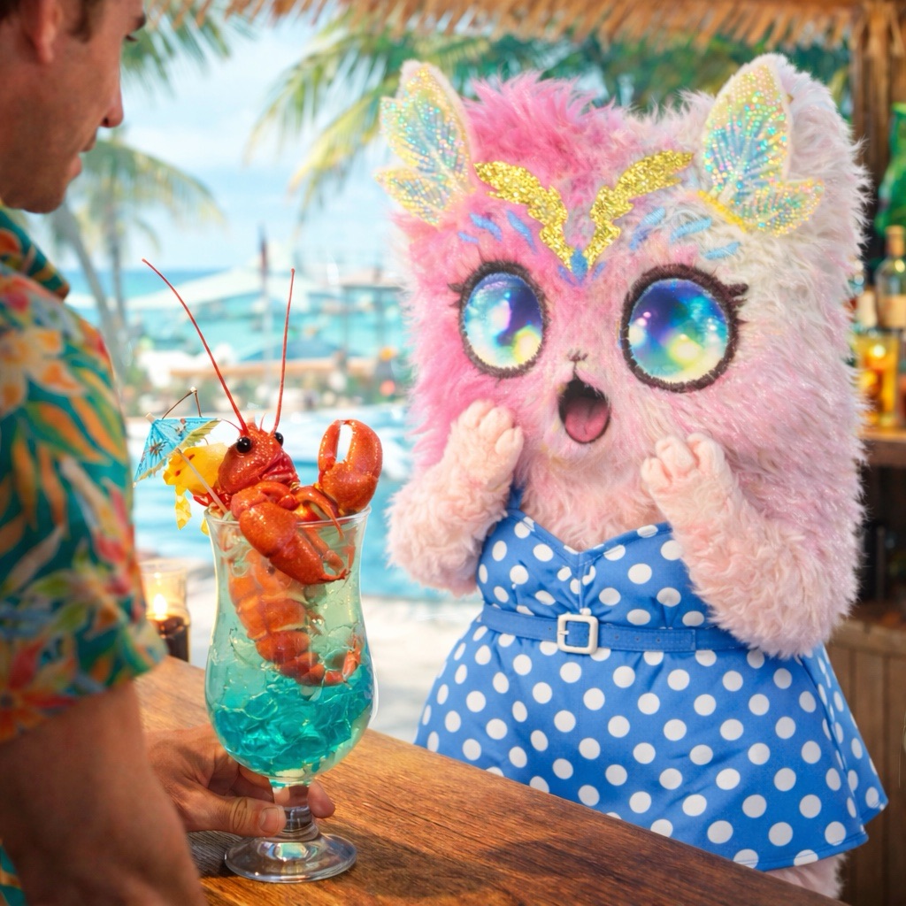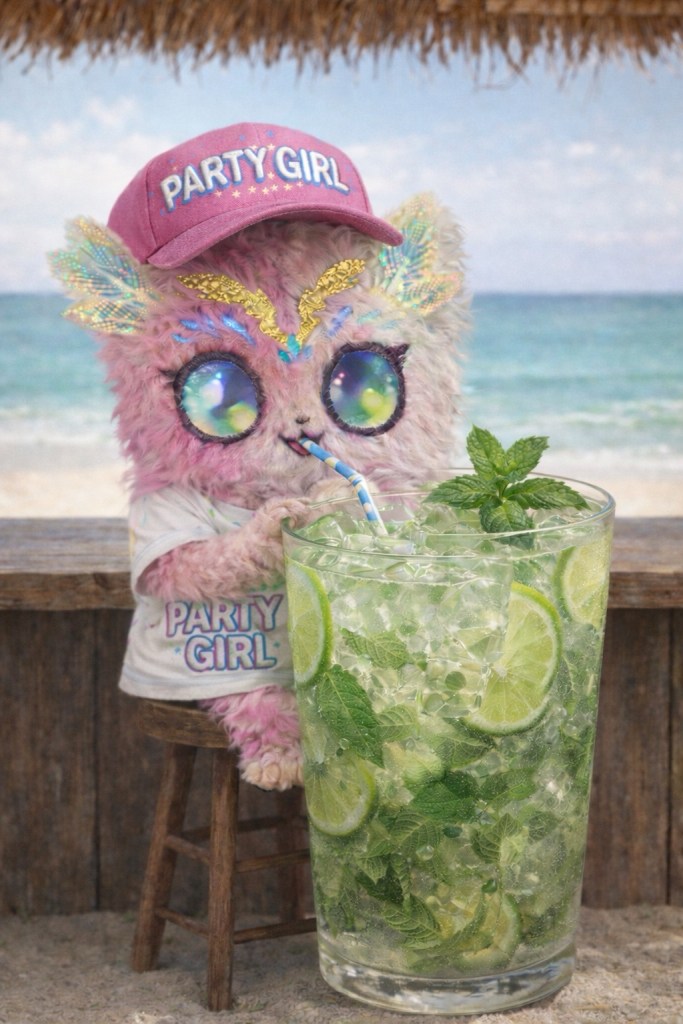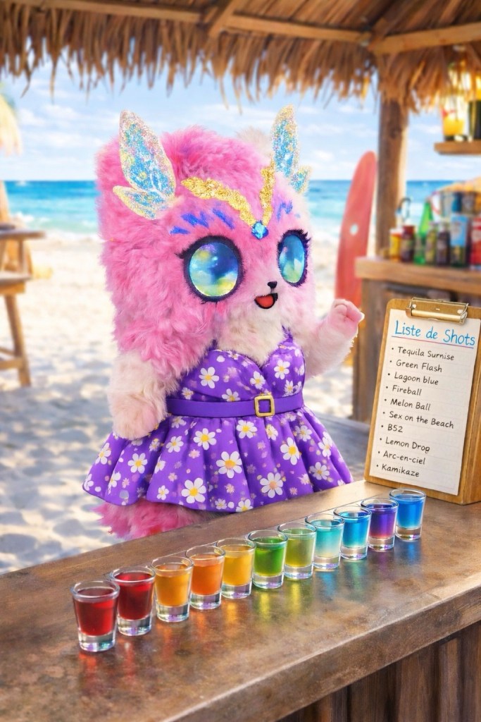 Lilya a de la difficulté à atteindre son coquetel.