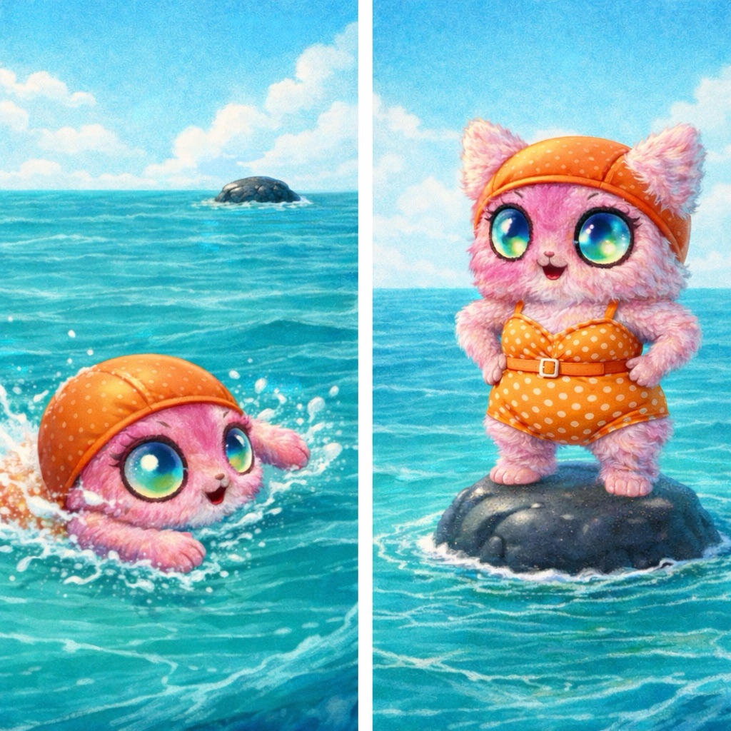 Lilya prend un bain de mer.